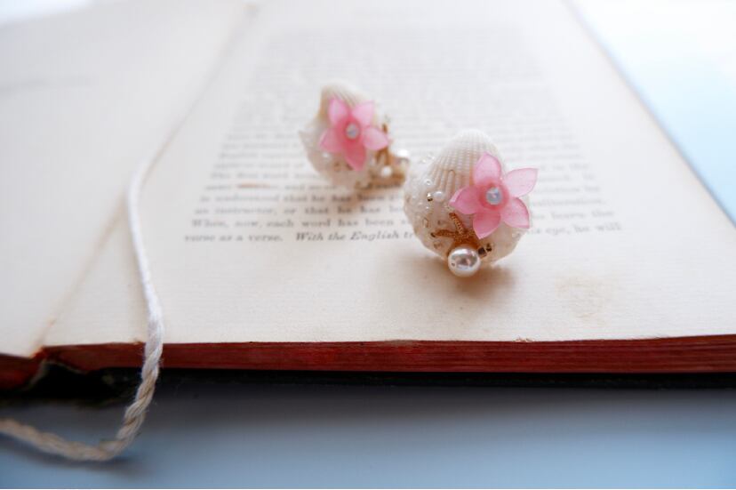 素材:プラバン、レジン、スワロフスキー、貝殻