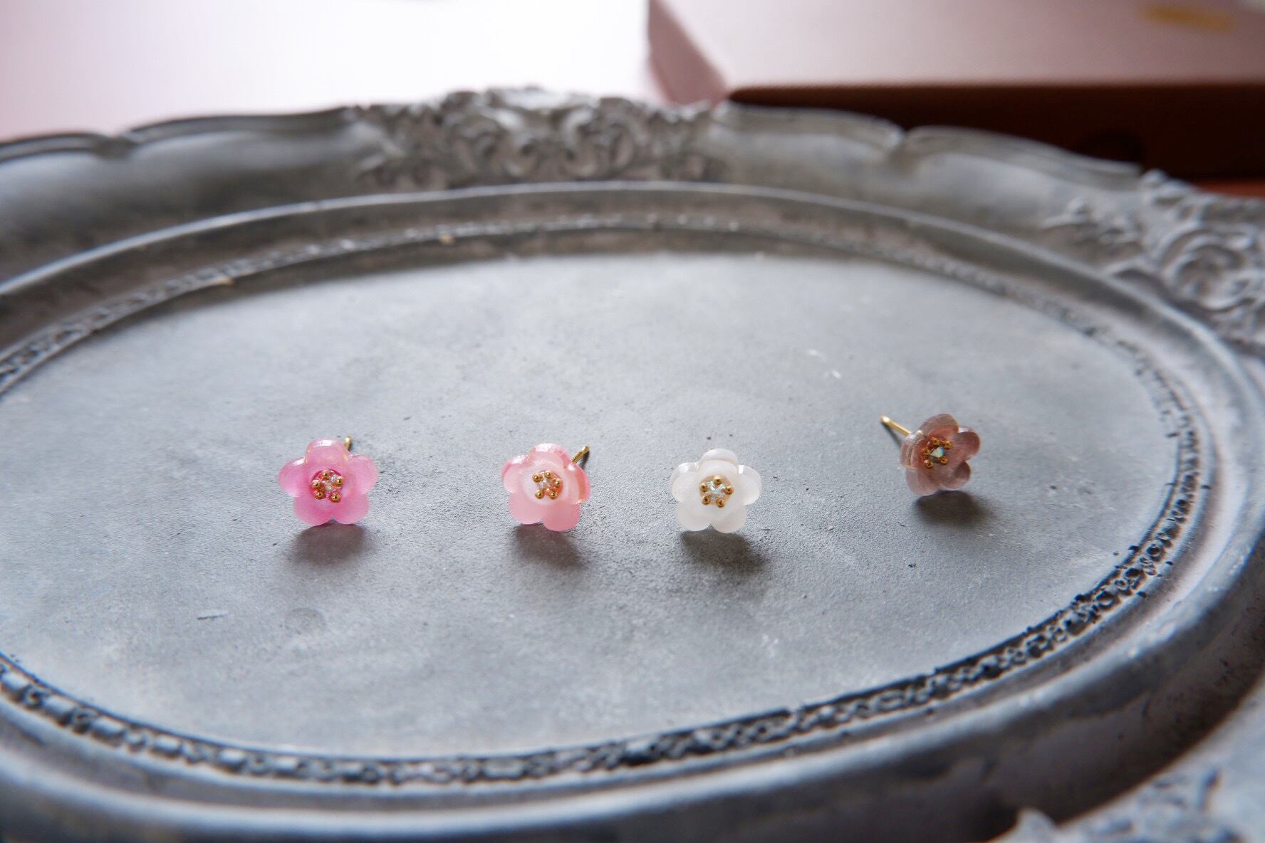 小さな小粒の花が4色のカラー展開で楽しめるショコラフラワーピアス/イヤリング。